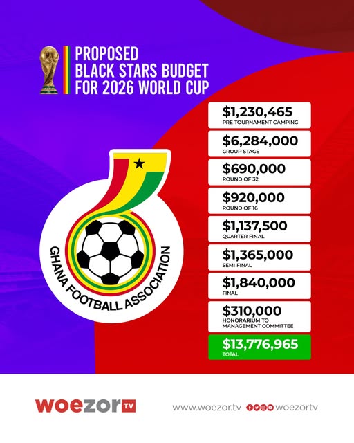 The total $13.7 million budget is based on a "best-case scenario" where the Black Stars reach the World Cup final. It includes $1.23 million for pre-tournament camping at Bryant University and $6.28 million for the group stage, where Ghana will face England, Croatia, and Panama. As the debate intensifies, the GFA faces increasing pressure to justify why five officials require a combined payout that could fund several local youth academies for an entire year.