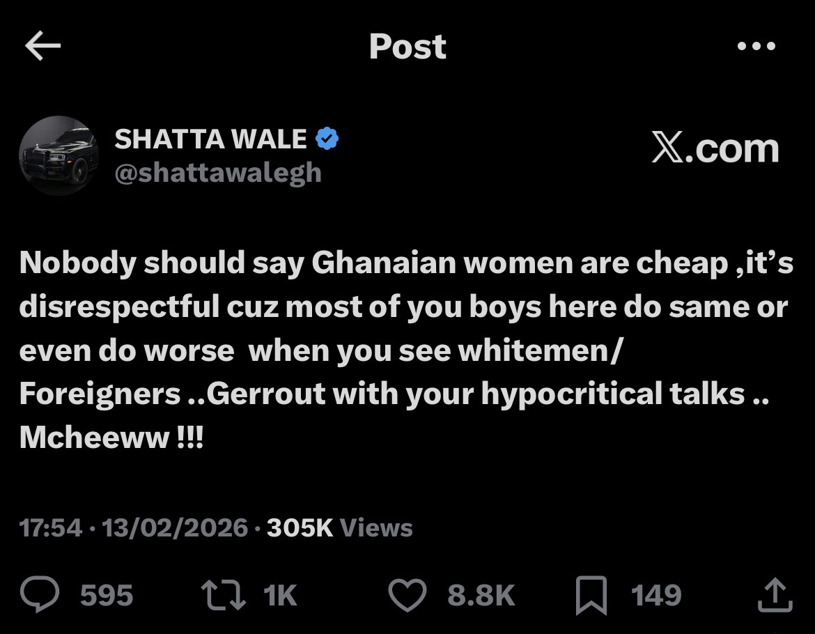 In a tweet that is rapidly going viral on TikTok and X, the Shatta Movement boss appeared to slam the public outcry against the suspect. Instead of condemning the act, Wale argued that many Ghanaian men criticizing the suspect are guilty of similar or worse behavior in private.